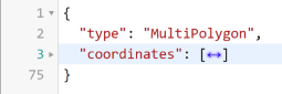 You will notice that the editor does some automatic formatting on the text you are typing to bring into a structured form. This indenting makes it easier to work with the nested nature of GeoJSON.
